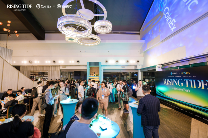 HONG KONG, April 26, 2026 (GLOBE NEWSWIRE) — CoinEx successfully concluded “RISING TIDE: High-Signal Night” during Hong Kong Web3 Festival 2026, co-organized with ViaBTC and supported by Mercuryo and Global Fintech Institute (GFI). The exclusive side event brought together global leaders, builders, and investors for an evening of meaningful connection and high-impact industry dialogue.